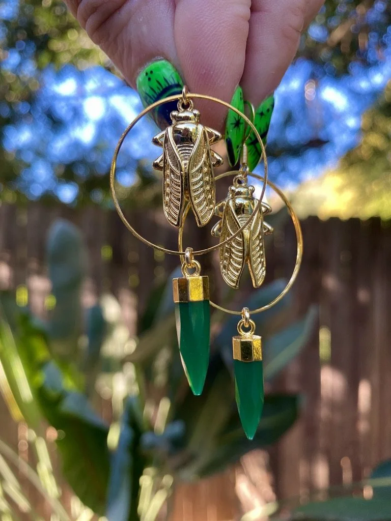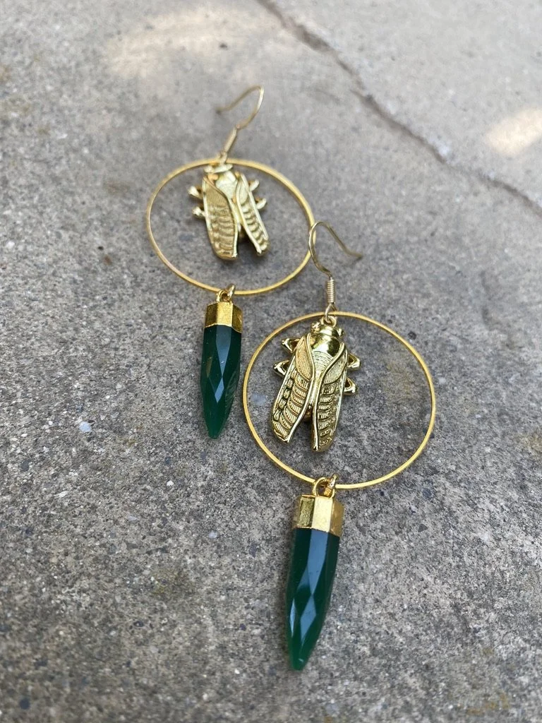 Amazing gold filled Cicada with green onyx spikes