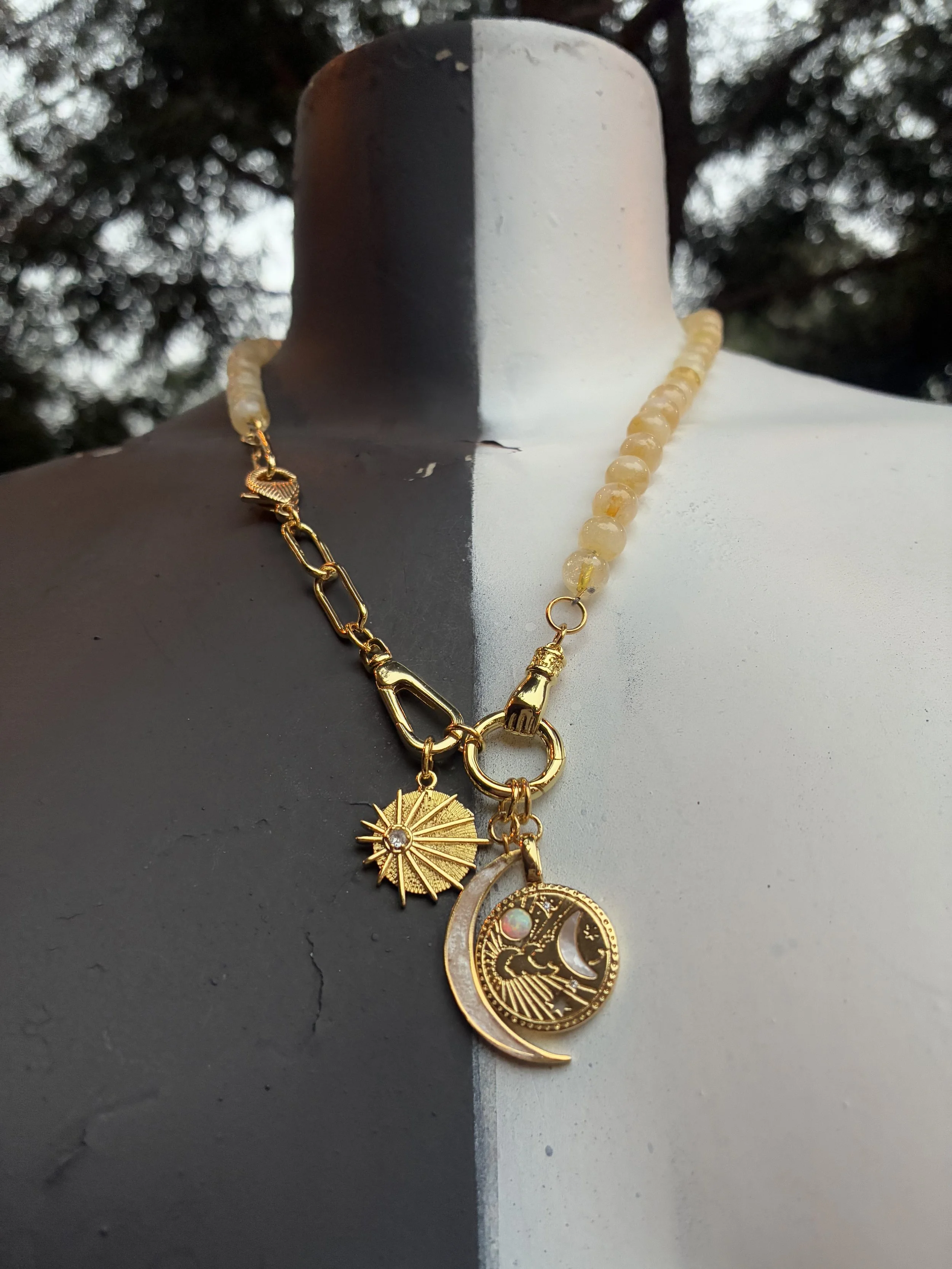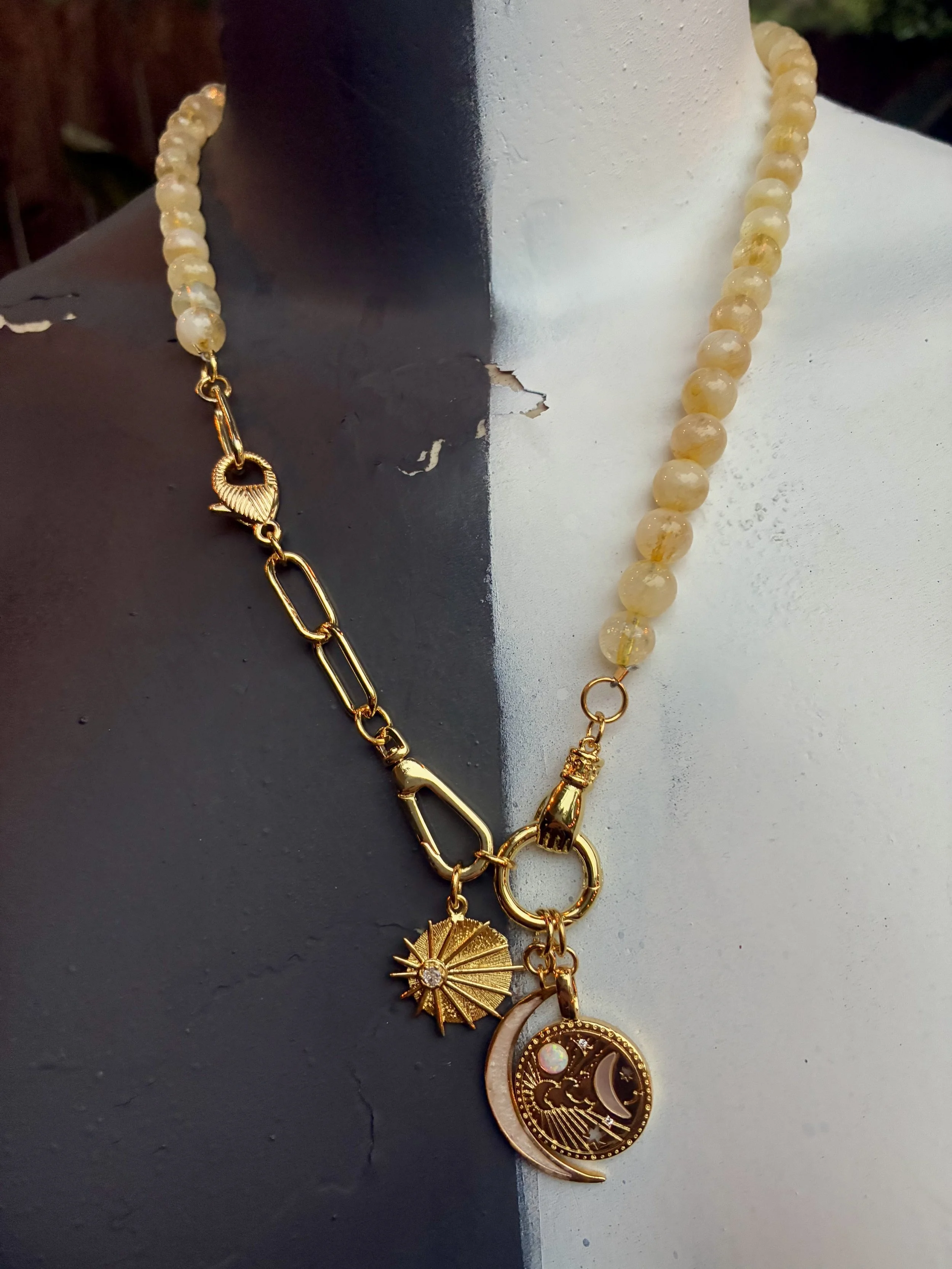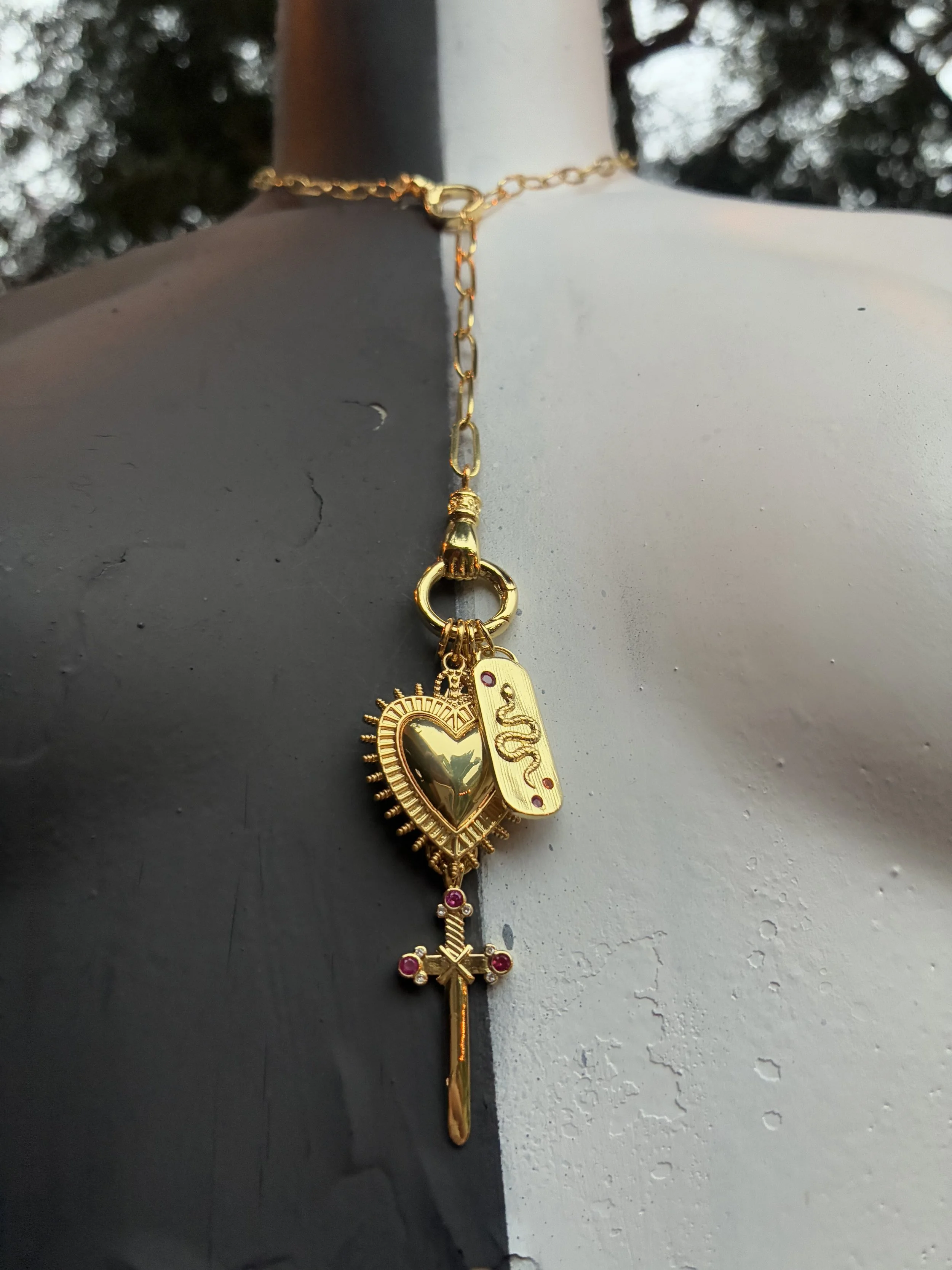 Stainless steel chain with spring clasps for interchanging charms and wearing as lariat