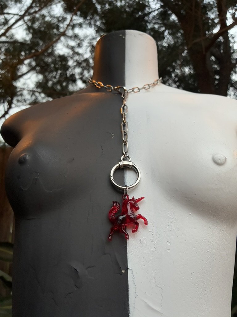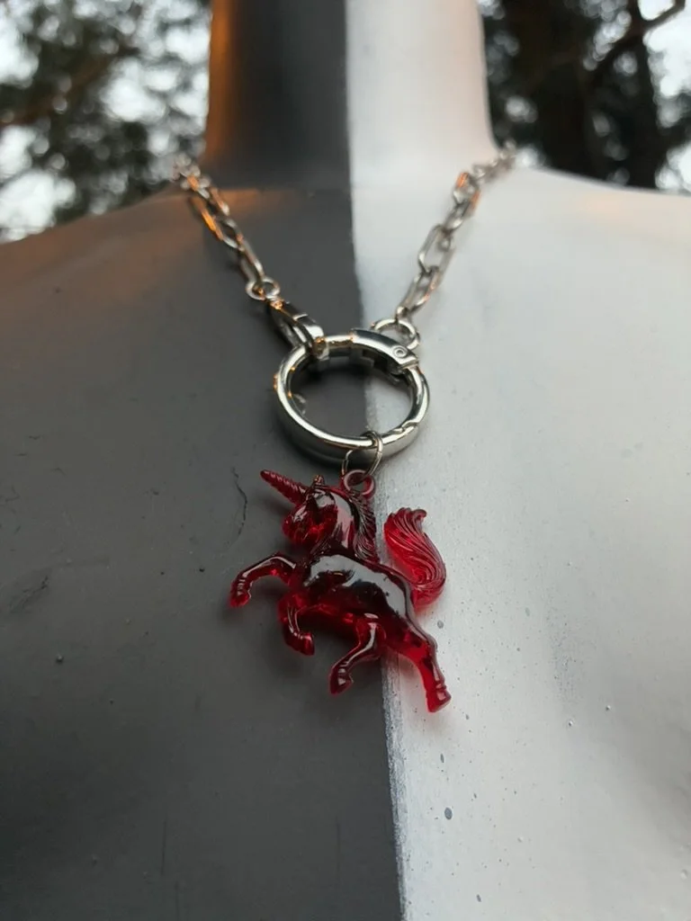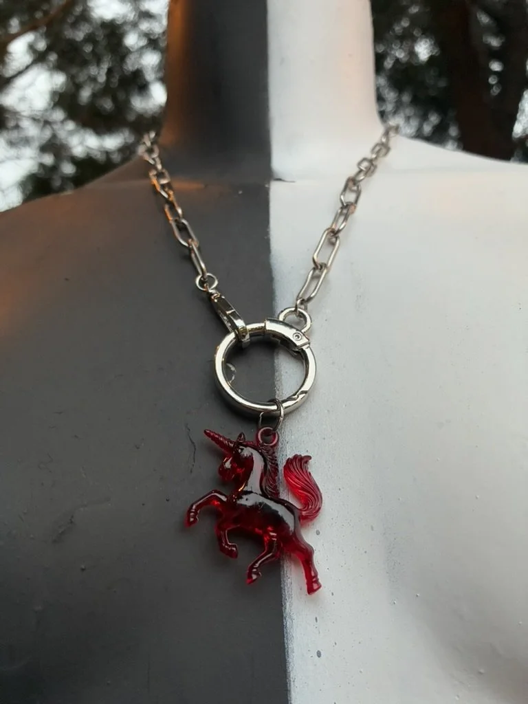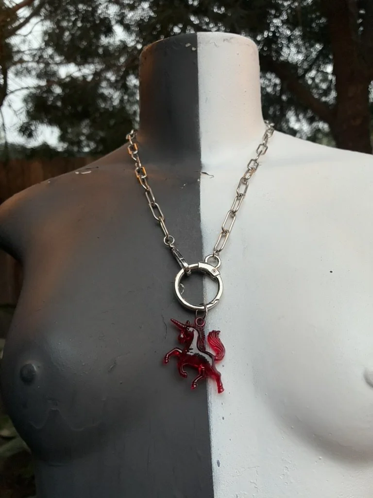 Beautiful vintage glass pendant on stainless chain with vintage charm holder that opens